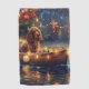 Set segelt mit dieser sehr detaillierten Abbildung in den Zauber der Urlaubssaison und zeigt einen stolzen Hund, der in einem festlich dekorierten Boot sitzt und über einen ruhigen Weihnachtssee gleitet. Die Lichter der nahen Kiefernbäume reflektieren das Wasser und warmen, festlichen Glanz, der das gemütliche Ambiente verstärkt. Die Ornamente versetzen sich von den Seiten des Bootes, während die Laternen leuchten und eine Szene schaffen, die das wahre Wesen der Weihnachtswärme und -freude einfängt. Dieses nostalgische Kunstwerk bringt eine Touch von Urlaubsmagie in jeden Raum, perfekt für diejenigen, die den Geist der Saison schätzen.