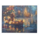 Set segelt mit dieser sehr detaillierten Abbildung in den Zauber der Urlaubssaison und zeigt einen stolzen Hund, der in einem festlich dekorierten Boot sitzt und über einen ruhigen Weihnachtssee gleitet. Die Lichter der nahen Kiefernbäume reflektieren das Wasser und warmen, festlichen Glanz, der das gemütliche Ambiente verstärkt. Die Ornamente versetzen sich von den Seiten des Bootes, während die Laternen leuchten und eine Szene schaffen, die das wahre Wesen der Weihnachtswärme und -freude einfängt. Dieses nostalgische Kunstwerk bringt eine Touch von Urlaubsmagie in jeden Raum, perfekt für diejenigen, die den Geist der Saison schätzen.