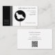 Moderne geometrische Formen markieren eine Silhouette eines Cocker Spaniers auf dieser Visitenkarte in Schwarz und Weiß. Platz für Ihren geschäftlichen oder Zwingernamen und Tagline, zusammen mit einem individuellen QR-Code auf der Rückseite machen diese Karte perfekt, um bei Hundeschauen und mehr zu verwenden.
