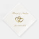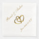 Zwei Gold Heart geformt Hochzeitsrennen und personalisiert mit dem Namen der Braut und Bräutigam mit dem Datum der Zeremonie, Papier Dinner Napkins