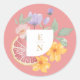 Cocktail Citrus Floral Wedding Monogram Runder Aufkleber