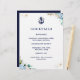 Freuen Sie sich auf ein fröhliches Hochzeitsszenario am Strand, das nautische Elemente (Anker der Marine, Knoten, Seestern) mit wunderschönen Blumensträußen aus blauen Hydrangea, blauen und weißen Anemonenbäumen, Eukalyptus-Blätter, Dahlien und Grünpflanzen kombiniert. Die Monogramme von Bride und Groom. Navy-Schrift. Ideal für Hochzeiten am Strand, Hochzeiten im Wassersport, Hochzeit in Urlaubsort, Hochzeiten im Sommer.