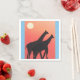 Diese weißen Cocktail-Servietten sind mit meiner Darstellung zweier Giraffen entworfen, die gegen einen orangefarbenen Sonnenuntergang silhouettiert sind.