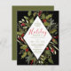 Handgemalte Wasserfarben, heilige Blätter und hellrote Beeren auf schwarzem Hintergrund. Weihnachts Cocktail Party Einladung mit einfachem Bearbeiten handgeschriebener Schrift. Alle Texte können bearbeitet werden; Schriftart, Farbe und Layout können nach Stil und Geschmack geändert werden.