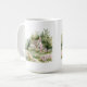 Diese Tasse zeigt ein hübsches Aquarellbild einer Hütte in einem blühenden Garten. Das Bild wird zweimal produziert, sodass es auf beiden Seiten der Tasse angezeigt wird.