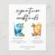 Dieses Cocktails-Cocktails-Cocktails-Menü mit schlichter schwarzer Typografie über 2 Drinks und deren Zutaten für Ihre Hochzeit-Bar. Ein niedlicher Blue Lagoon und Mai Tai zeichnend fügen einen coolen Flair zu Ihrem Bar Menü hinzu. Füllen Sie bitte die Namen des Paares und das Datum für seinen Empfang aus.