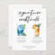 Dieses elegante Cocktails-Cocktails-Menü mit schwarzer Typografie über 2 Strandgetränken und deren Zutaten für Ihre Hochzeitsfeier an der Küste. Ein niedlicher Blue Lagoon und Pina Colada zeichnend fügen einen coolen Flair zu Ihrem Bar Menü hinzu. Füllen Sie bitte die Namen des Paares und das Datum für seinen Empfang aus.