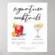 Cocktails Hochzeitsmenü mit süßen Signaturen Poster