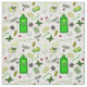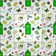 Illustriertes Handmuster von Gin-Flaschen, Cocktails, Rührstäbchen, Zitronen und Limonen Scheiben und Wacholderbeeren