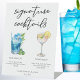Dieses schicke Cocktails-Podest mit schwarzer Typografie über 2 Meeresgetränken und deren Zutaten für Ihre Hochzeitsfeier am Strand. Ein niedlicher Blue Lagoon und Lemon Drop martini zeichnend fügen einen coolen Flair zu Ihrem Bar Menü. Füllen Sie bitte die Namen des Paares und das Datum für seinen Empfang aus.