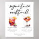 Dieses elegante Cocktails-Menuposter mit schwarzer Typografie über 2 Ihrer Lieblingsgetränke und deren Zutaten für Ihre Hochzeitsfeier an der Küste. Ein schicker Sangria und Cherry Französisch 75 zeichnend fügen einen lustigen Flair zu Ihrem Bar-Menü. Füllen Sie bitte die Namen des Paares und das Datum für seinen Empfang aus.