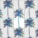 Coconut Palm Trees Line Kunst zeichnend farbigen Stift wiederholt Muster Stoff. Der Baum ist größtenteils tief indigoblau mit lila und grünen Farbtupfern. Ein klassisches tropisches Inseldesign.