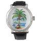 Transparenter Hintergrund cooler Kokospalmenbaum auf einer tropischen Insel mit Meerblick