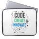 "Schützen Sie Ihre Kreativdrehscheibe mit dieser innovationsorientierten Hülle mit 'CODE CREATE INNOVATE' und binären Mustern - militärisches Neopren absorbiert Schocks und macht Maker-Reisen möglich. Wasserbeständig + passt 13-16" Laptops mit rutschsicherem Untergrund. Wesentlich für Entwickler und Hardware-Innovatoren. **Sichern Sie Ihren digitalen Workshop noch heute!**"