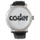 Uhr, Klassische Damenuhr mit schwarzen Lederarmband