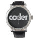 Uhr, Klassische Damenuhr mit schwarzen Lederarmband