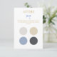 Diese wunderschöne Farbdots Kleid Code Insert Karte, bietet 4 bearbeitbare pastellfarbene Optionen vor einem schicken weißen Hintergrund (vorne) und benutzerdefinierten Text in einer goldenen Farbe. Ein hübsches, trendiges, blaues Band in Aquarelltönen Set den Ton. Die Rückseite der Karte weist eine kontrastfarbene Farbe auf.