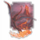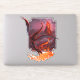 Epische Fantasy-Kunst zeigt einen roten Drachen, der einen Brand atmet, während ein Vulkan Magma in der Ferne ausstrahlt. Von Paxdomino