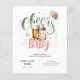Rustikale und niedliche Biere und Flaschen, Babyjubiläum, Baby wird mit Wildblumen gebrüht, Grün in Salbei und Pfirsichfarben Babydusche Einladung, geschlechtsneutral. Textfelder auf beiden Seiten.