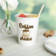 Coffee Addict Retro-Logo in einem Cartoon und Vintagen Stil.