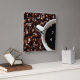 This clock feys a foto of a cup of coffee resting on top of coffee beans. Great clock for coffee lovers and looks great in the kitchen, cafe or coffee shop.
