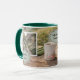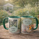 Coffee before gardening, personal morning garden with robin bird, photo mug.