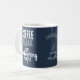 Crisp white artwork on a deep midnight blue background for a modern coffee aesthetic. This design features motivational coffee quotes with a stylish coffee cup illustration, perfect for coffee lovers. Add your name above the coffee cup design to make it truly unique. You can also personalize the text—change words like "people" to your profession or any other phrase you prefer. Ideal as a gift or for your own daily coffee break. All text fields are editable for easy personalization!