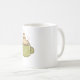 A cute brown bunny, serving as foam on top of the coffee that is in a green mug