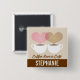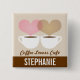 Individueller Mitarbeitername oder Button für Coffeeshops.  Latte, Espressobraun, Rosa und Weiß.  Das Bild enthält zwei Tassen Kaffee, der mit Liebe gebraut wird.  Verwenden Sie dieses Bild oder laden Sie Ihr eigenes Logo oder Bild in den Raum.  Personalisieren Sie Ihre Bestellung mit dem Firmennamen und dem Namen des Mitarbeiters.