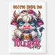 A funny, sarcastic, and colorful design showcases an adorable highland cow clutching a takeout coffee cup. The cup features a coffee bean and a black lid. The cow, with its big blue eyes and black-and-white fur, adds charm to the design. The vibrant text reads, "Coffee helps me tolerate idiots." This design is available on various products, making it a perfect gift for coffee lovers.