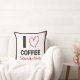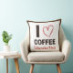 This decorative throw pillow features the phrase “I ♥ Coffee” with bold lettering filled with a stylish coffee bean pattern. The design also includes space for a custom name, making it a fun and personal piece of coffee-themed decor.