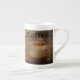 Kaffeeliebhaber können ihre Leidenschaft feiern und ihr Lieblingsgetränk stilvoll trinken mit dieser Knochen-China-Tasse mit einem grafischen Design von dampfenden Tasse von Kaffee und Kaffee-verwandten Wortkunst.