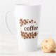 A clean and modern latte mug featuring the phrase “coffee or tea” paired with lightly scattered coffee beans and fresh tea leaves. Designed to complement the tall, elegant shape of a latte mug, this minimalist artwork blends seamlessly with the white surface. Perfect for cozy coffee breaks, tea moments, and stylish everyday drinkware.