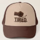 Diese mutige und kreative Kappe zeigt eine kraftvolle Faust aus gebrannten Kaffeebohnen, die buchstäblich das Wort "MÜDE" zerschlägt.