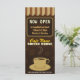 Coffee Shop © Sunny Mars Designs. Personalisierte, vollständig anpassbare Kaffeehaus oder Café-Promotion-Rack-Karte und Kaffeekarte mit einer Abbildung einer dampfenden Tasse Schwarzkaffee, in einer Kaffeetasse aus weißem Porzellan oder in einer Tasse mit subtilen Kaffeebohnen im Hintergrund. Personalisieren oder anpassen, indem Sie Ihren eigenen Firmennamen und Ihren eigenen Text hinzufügen. Klicken Sie auf den Button "Anpassen", um es zu personalisieren.