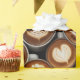 Bold coffee themed print featuring coffee cups with eleganty foamed coffee.