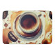 A design of a cup of coffee that has pilled over and left all kinds of stains there are some coffee beans scattered a round, this was created digitally using specific software to generate this effect.