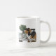 Enjoy a hot beverage in this mug Featuring a cartoon image of a sheltie having a coffee