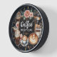 Diese einzigartige Uhr wurde von LeahG entworfen und bietet ein einzigartiges Kaffeekochen-, Kaffee- und Kaffeemaschine-Thema, mit dem Sie Ihre Küche, Ihr Esszimmer und Ihr Café mit einem stilvollen Coffeeservice bereichern können.