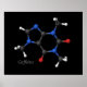 Schwarzes Poster mit einem farbkodierten, 3D-Molecular-Modell des Koffeins.
