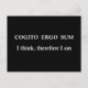 Cogito, ergo sum ist eine philosophische Aussage, die von René Descartes auf Latein gemacht wurde, in der Regel als "Ich denke, also bin ich" ins Englische übersetzt. Die Phrase erschien ursprünglich auf Französisch als je pense, donc je suis in seinem Diskurs über die Methode, um ein breiteres Publikum zu erreichen, als das Latein hätte erlaubt. Descartes' Aussage wurde zu einem grundlegenden Element der Philosophie des Westerns, da sie angeblich angesichts radikaler Zweifel eine besondere Grundlage für das Wissen bot. Diese lateinische Phrase ist eine großartige Idee zum Geburtstag und zum Feiertag für Menschen, die schöne lateinische Phrasen und Philosophie mögen.