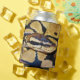 Schließen Sie das Foto eines gekochten Kugelpythons. Design auf beiden Seiten des Inhabers. Anpassbare Farbe unten.
