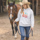 Featuring a distressed silhouette of a confident cowgirl standing cross-armed beside a hay bale, this design captures the unspoken strength it takes to thrive in all seasons. Whether you’re hauling, feeding, or just living that no-days-off life, this hoodie is made for you.