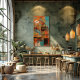 Este diseño abstracto en collage destaca una mezcla de líneas y un círculo central en tonos vibrantes de naranja, azul y marrón. Perfecto para los entusiastas del arte contemporáneo, este póster añade un toque moderno y dinámico a cualquier espacio, ideal para la decoración de hogares y oficinas.