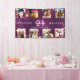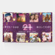 Herzlich willkommen auf einer 21. (oder einem beliebigen Alter) Geburtstagsfeier für ein Mädchen, die ihr Leben mit einer Collage aus 8 eigenen Fotos feiert. Foto von Familie, Freunden, Haustieren, Ferien. Personalisieren und fügen Sie einen Namen, Alter 21 und ein Datum. Mit dem Text: Willkommen (x2) Weiße und rosa Buchstaben. Eleganter lila Hintergrund. Die lila Hintergrundfarbe ist ungleichmäßig. Mit goldenen Sternen dekoriert.