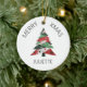 Enthält eine Collage Weihnachtsbaum in einer Farbpalette von rot und grün. Personalisieren Sie das mit einem Namen auf der Vorderseite und einem "from"-Namen auf der Rückseite.