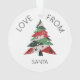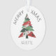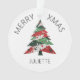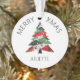 Enthält eine Collage Weihnachtsbaum in einer Farbpalette von rot und grün. Personalisieren Sie das mit einem Namen auf der Vorderseite und einem "from"-Namen auf der Rückseite.