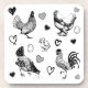 Untersetzer zum Thema Hühner. Niedliche Schwarz-Weiß-Hühner und -Herzen. Gutes Geschenk für alle, die Hühner Lieben!
