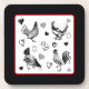 Weihnachts-Untersetzer zum Thema Hühnchen. Niedlich Schwarz-Weiß mit roten Details, Hühner und Herzen. Gutes Geschenk für alle, die Hühner Lieben!