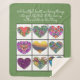 Collage of Painted Hearts (on green blanket), with Quote: A beautiful heart can bring things into your life that all the money in the world couldn't buy.
